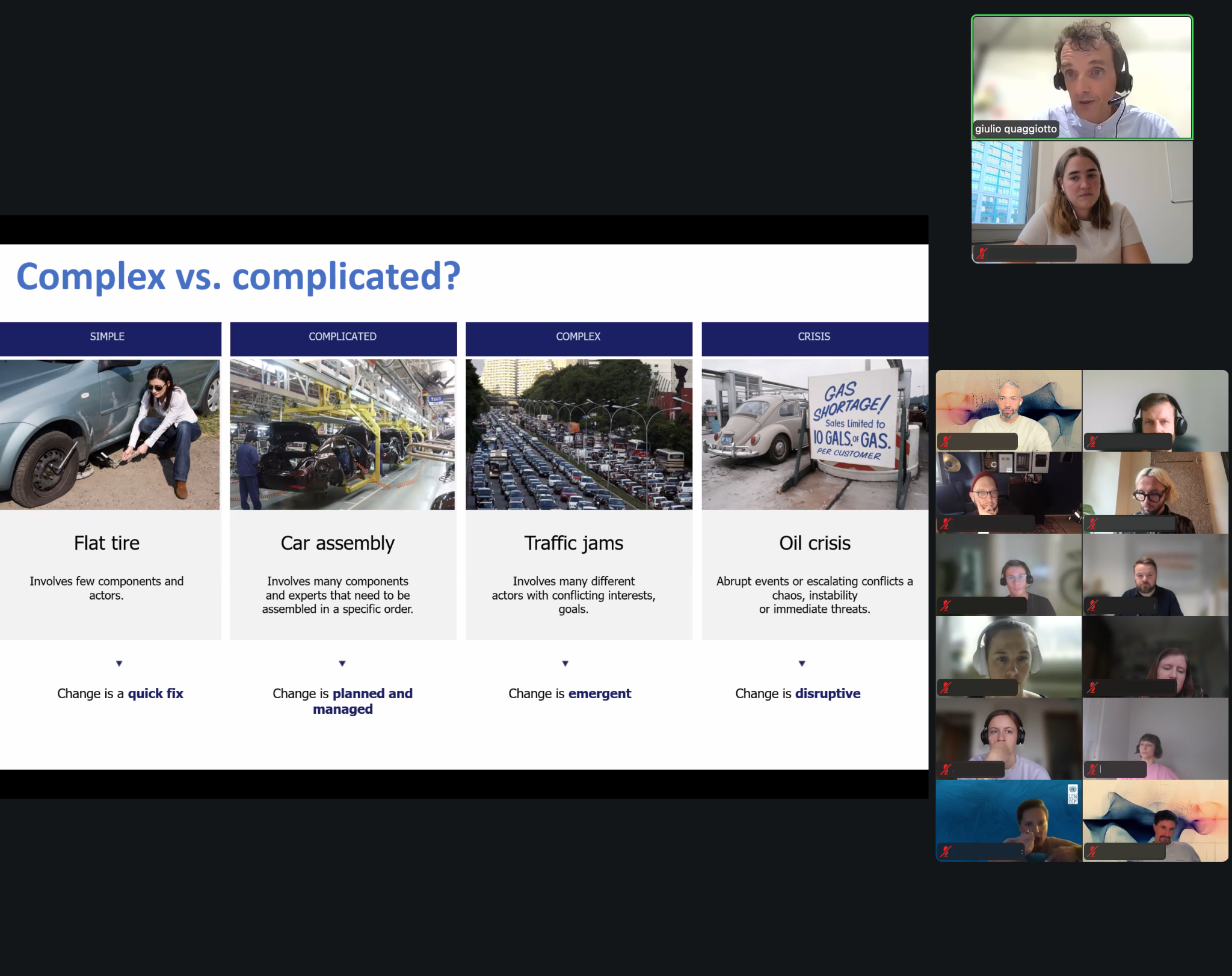 Wie das in der Praxis aussehen kann, haben wir anhand von Systemischen Portfolios greifbar gemacht: Nicht die eine perfekte Lösung entwickeln, sondern viele verschiedene parallele aber kohärente Interventionen. In der Interaktion zwischen diversen Interventionen und Akteuren kann in kann emergente Wirkung entstehen und zwar jenseits dessen, was Einzelprojekte erreichen. Klingt gut, und aus vielen Jahren Praxiserfahrung konnten wir konkrete Beispiele besprechen. Oft war auch hier die zentrale Frage: Wie verkaufe ich das den politischen Entscheidungsträgern?